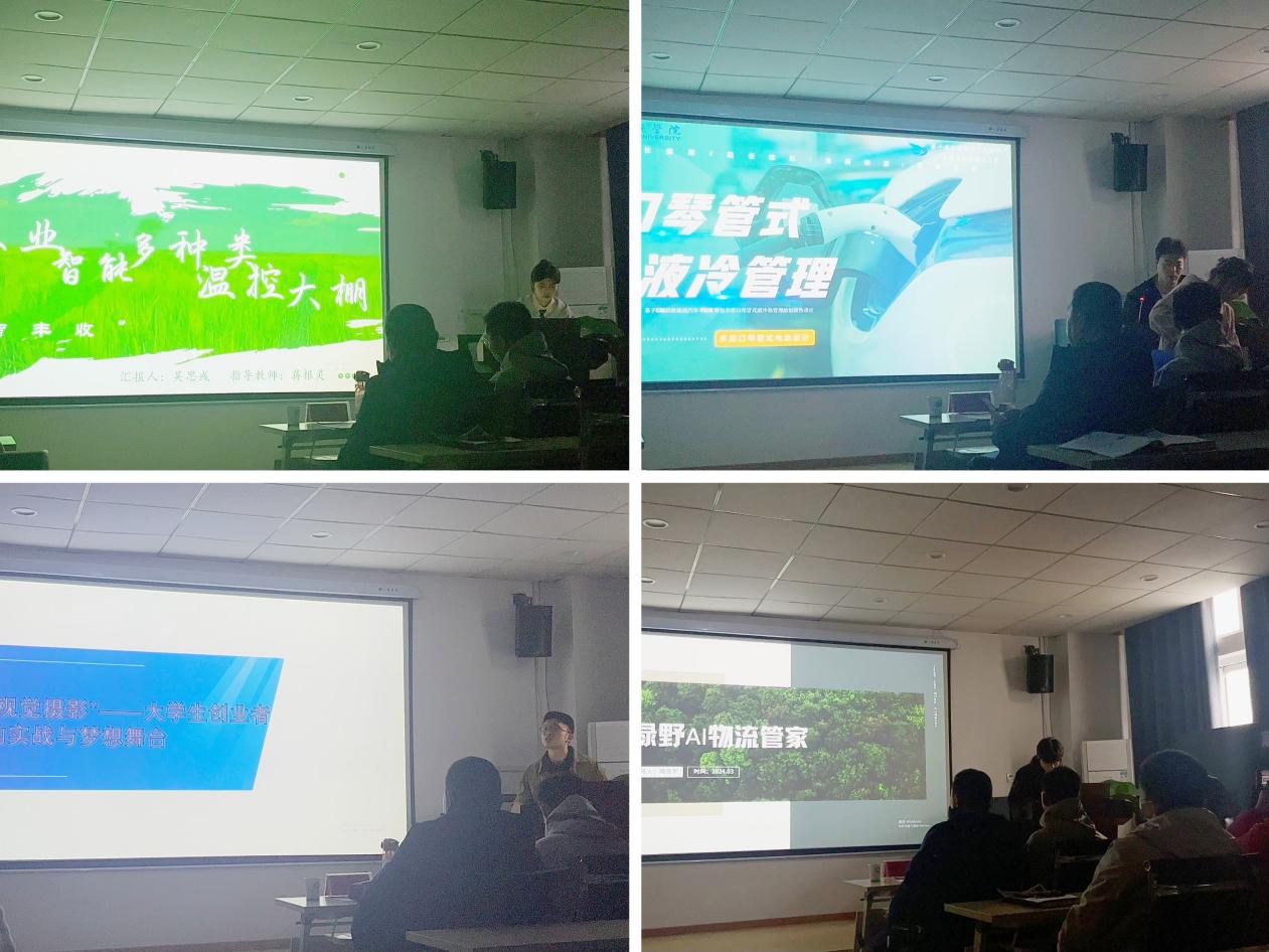 6名学生项目负责人一一上台汇报,从各自的创新创业的项目来源、政策支持、研发目的、实现功能等方面着手,着重介绍了项目的创新特色、市场前景、营销策略、风险分析等。专家团队就同学们汇报内容进行指导,给予充分肯定,同时提出可行性建议。鼓励同学们在项目开展前做好充分的市场调研和用户画像分析,加强项目团队统筹建设,专注项目创新点做精做强,明确市场定位,做好应用场景分析。