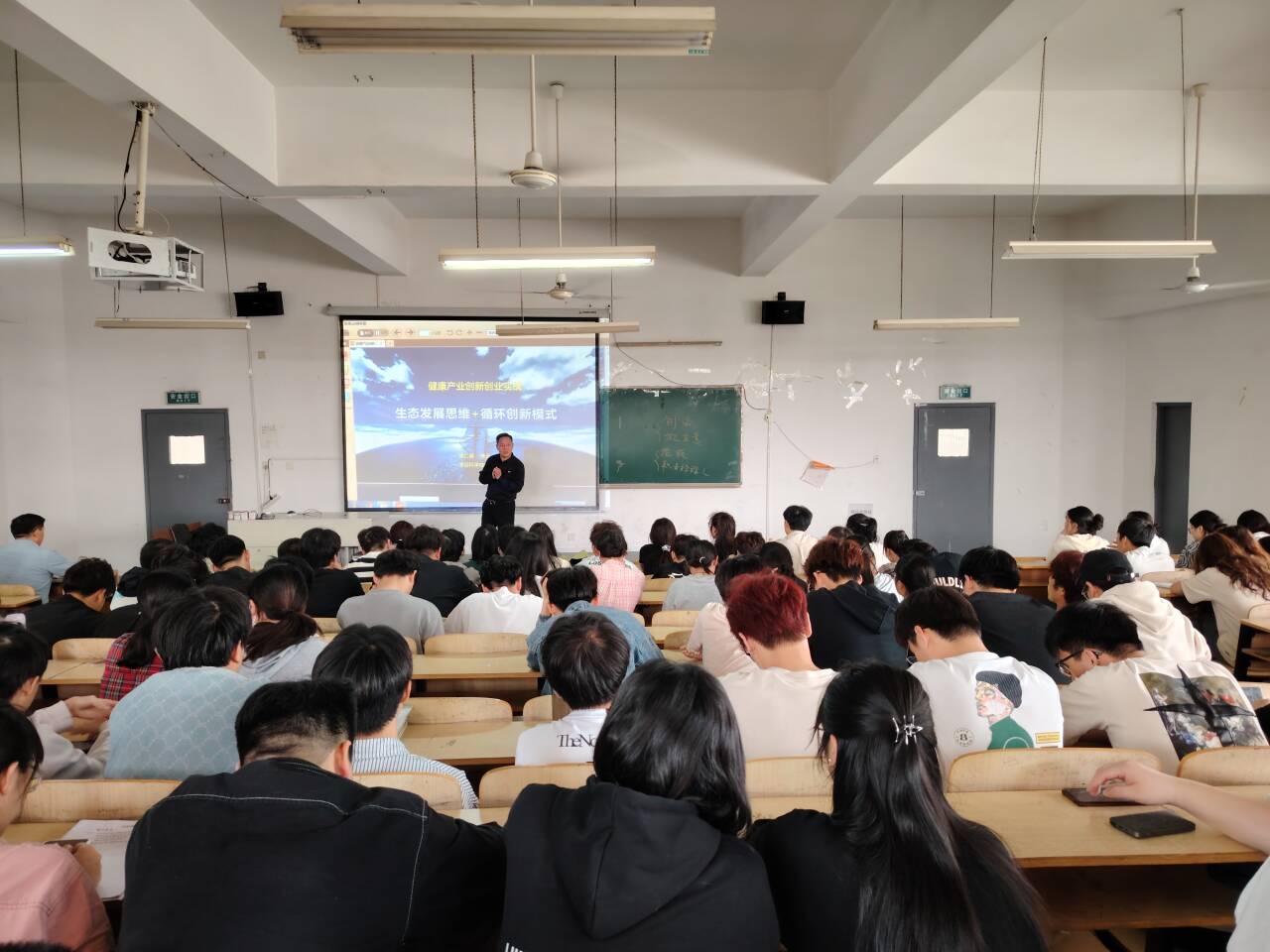4月16日,欧洲大学工商管理博士梁仁春,在我校开展以“生态发展思维+循环创新模式”为主题的学术讲座,现代康养产业学院师生200余人参加。