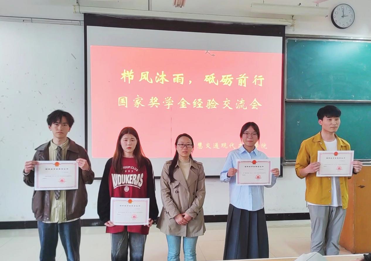 为深入学习贯彻习近平新时代中国特色社会主义思想,落实立德树人根本任务,充分发挥优秀学生的榜样引领作用,激励学生刻苦学习、奋进向上,4月17日,智慧交通现代产业学院举办了2022-2023学年国家奖学金颁奖典礼暨国奖获得者经验交流分享会。该院学管主任、优秀学生代表、全体辅导员及学生处相关工作人员参加。