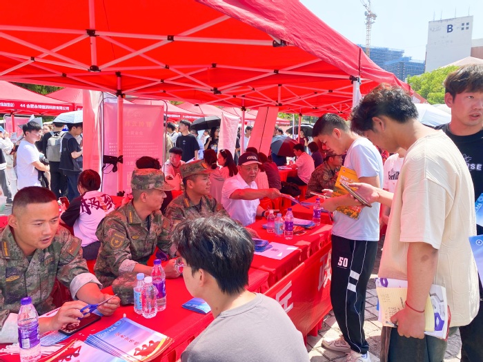为深入贯彻习近平强军思想,鼓励大学毕业生响应国家号召积极参军入伍,5月17日,我校征兵工作站在“安徽三联学院2024年校园春季双选会”现场设立征兵政策咨询展位,引导毕业生积极报名参军入伍,促进高质量就业,下好秋季征兵“先手棋”。