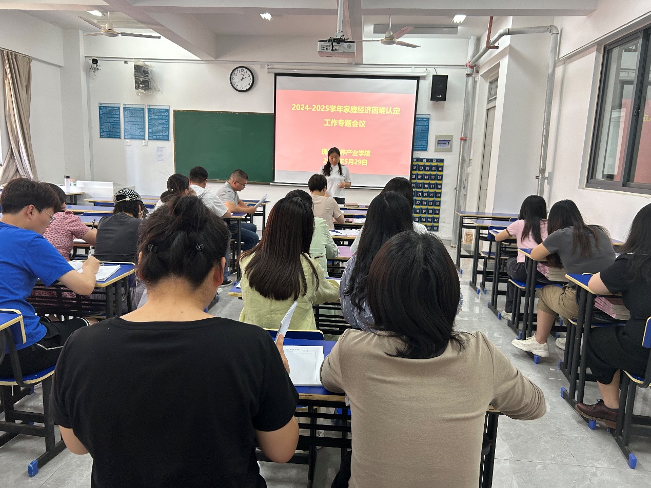 为认真做好家庭经济困难学生的认定工作,落实国家各项资助政策和措施,使学生资助工作高效、有序开展,5月29日下午,现代康养产业学院在康养2号楼404召开了2024-2025学年家庭经济困难学生认定工作专题会议。