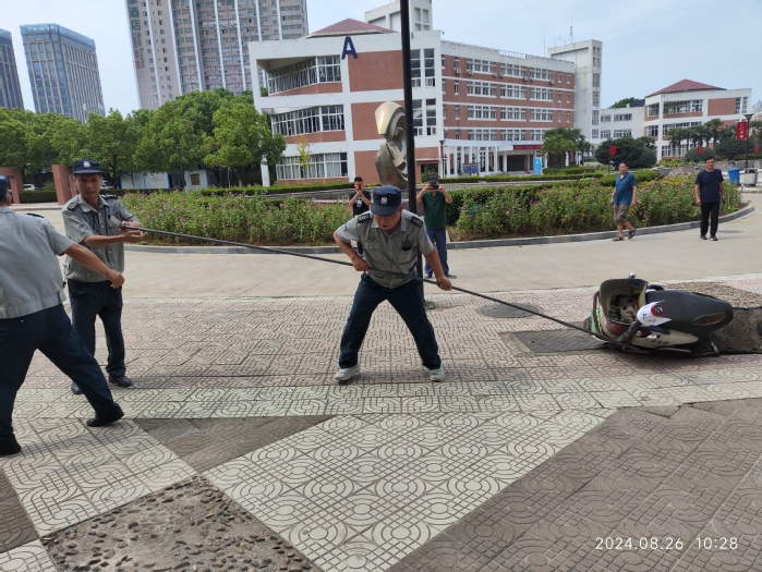 为有效防范和遏制电动自行车火灾事故的发生,提高应急队伍扑救初期火灾的应急处置能力,8月26日上午,安全管理处在B教学楼门口电动自行车停车区域开展2024年电动自行车模拟火灾专项应急演练,安全管理处全体人员参加演练。