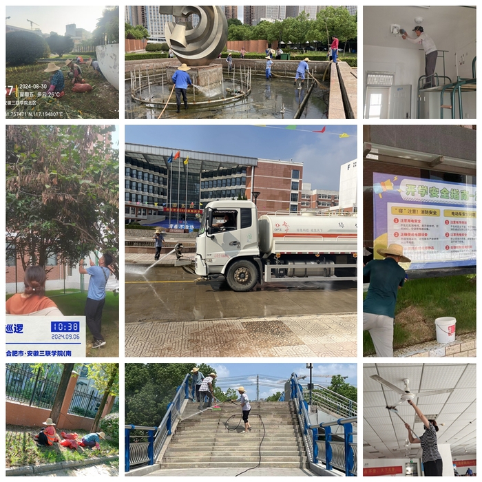 为进一步美化校园环境,切实让新生感受到校园之美,校园环境监管科对校园环境、绿化服务内容加强监管,逐条落实。督促绿化人员对全校10多条主次干道,建筑物周边百余棵不同种类的树木进行枯枝修剪及危树处理工作,集中收集和处理;加大人力,开展草花培育,对数十处裸露地带进行补栽补种;对各教学楼、宿舍楼、体育场等周边绿化带进行清理;对喷泉池进行绿化景观布置。新生开学之际,组织人员对四个喷泉池清淤冲刷,对校内雕塑,广告牌等设施进行清洗,使用洒水车对校园路面进行彻底清洁,对新生宿舍多轮卫生精细化保洁,开学后带给师生全新的面貌。
