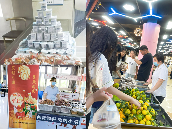 后勤保障监管处在食堂精心准备了丰富多样的中秋美食,并向同学们赠送水果、酸奶和月饼,这些贴心的举措让远离家乡的学子们感受到了家的温暖。