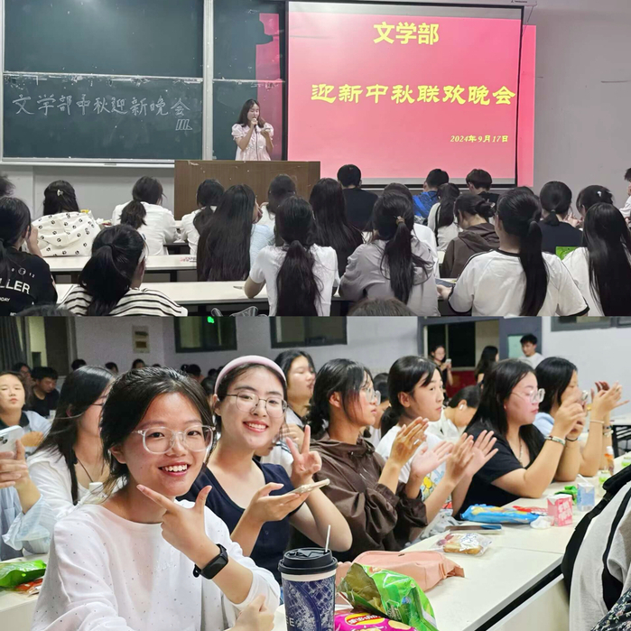 文学部举办迎新中秋联欢晚会,新生们通过古典诗词朗诵、民族舞蹈等节目,展现了中秋文化的独特魅力,让同学们在传统与现代交融的欢乐氛围中尽情享受其美。