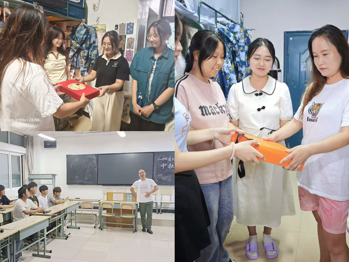 数字创意现代产业学院的辅导员们带着月饼深入宿舍,慰问学生,并组织了中秋联欢晚会。同学们一边品尝着香甜的月饼,一边交流各自的家乡节日习俗,整个晚会洋溢着浓厚的节日气息,笑声和欢乐声此起彼伏。