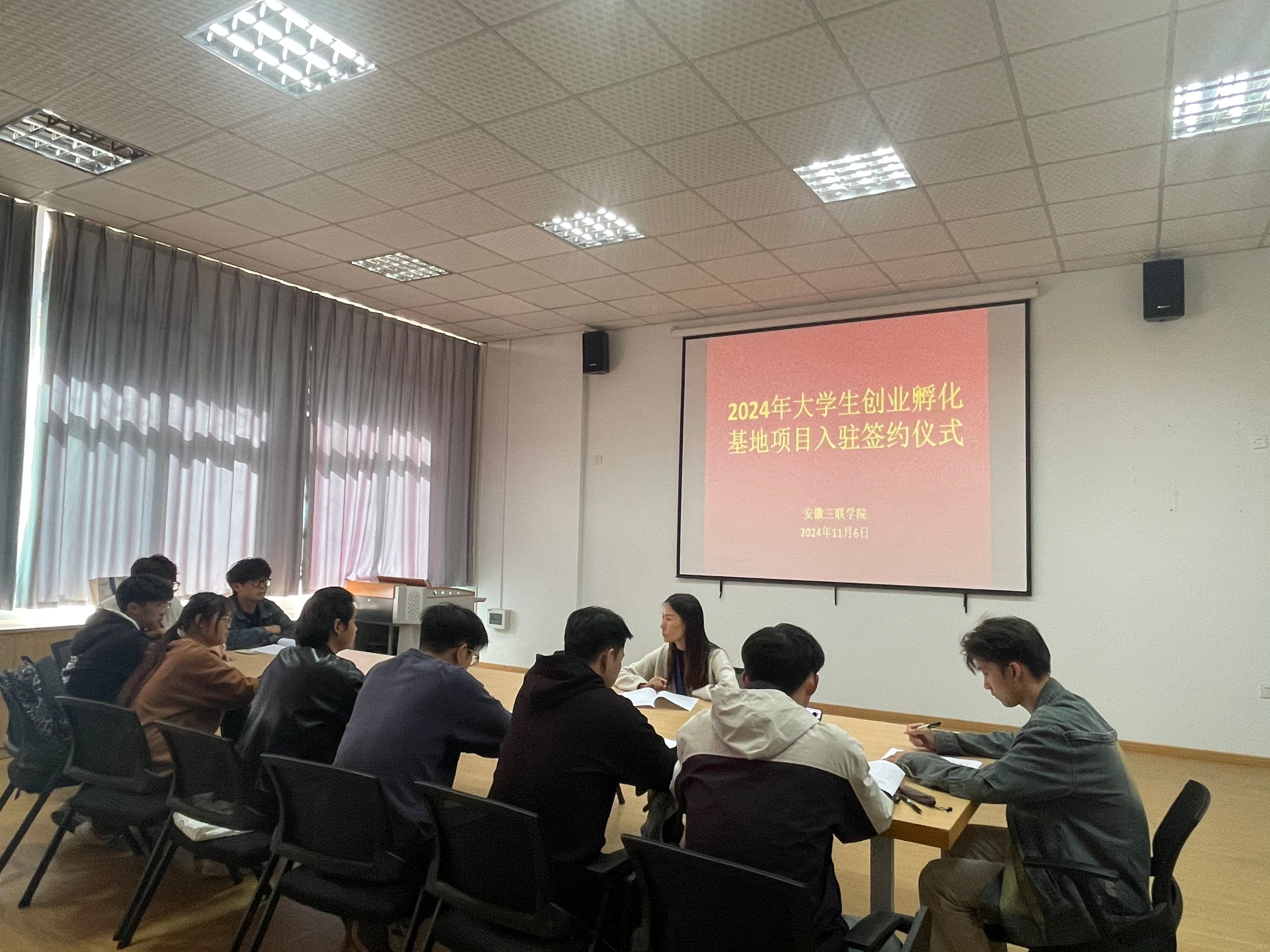 签约仪式上,就业创业处负责人与各入驻项目负责人分别签订了《安徽三联学院创业孵化基地入驻协议书》。她鼓励各入驻项目不仅要专注于自身的成长与发展,更要积极参与学校举办的各类创新创业竞赛和活动,通过实践锻炼迅速壮大项目实力。大家就项目存在问题和未来的发展规划展开了讨论。