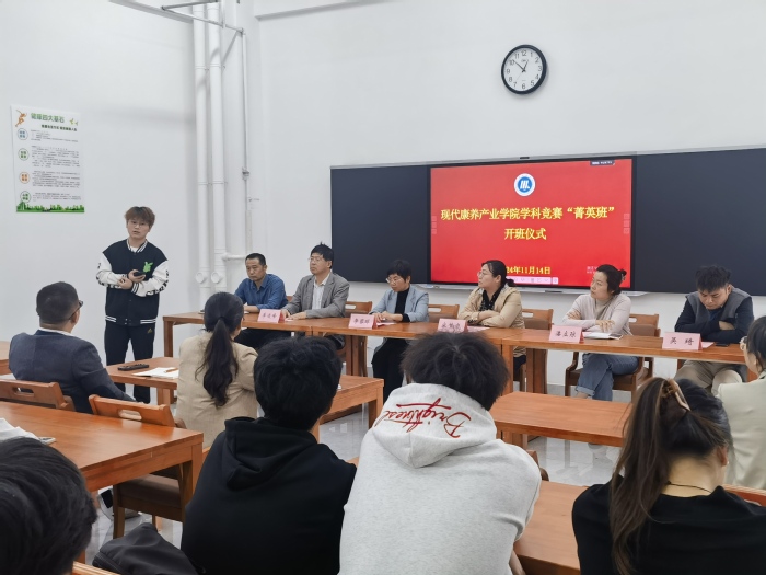 11月14日,现代康养产业学院举行学科竞赛“菁英班”开班仪式。安徽三联学院副校长兼现代康养产业学院院长宋梦岚、现代康养产业学院相关领导,学校其他处室领导、教师代表和“菁英班”全体学生参加仪式。