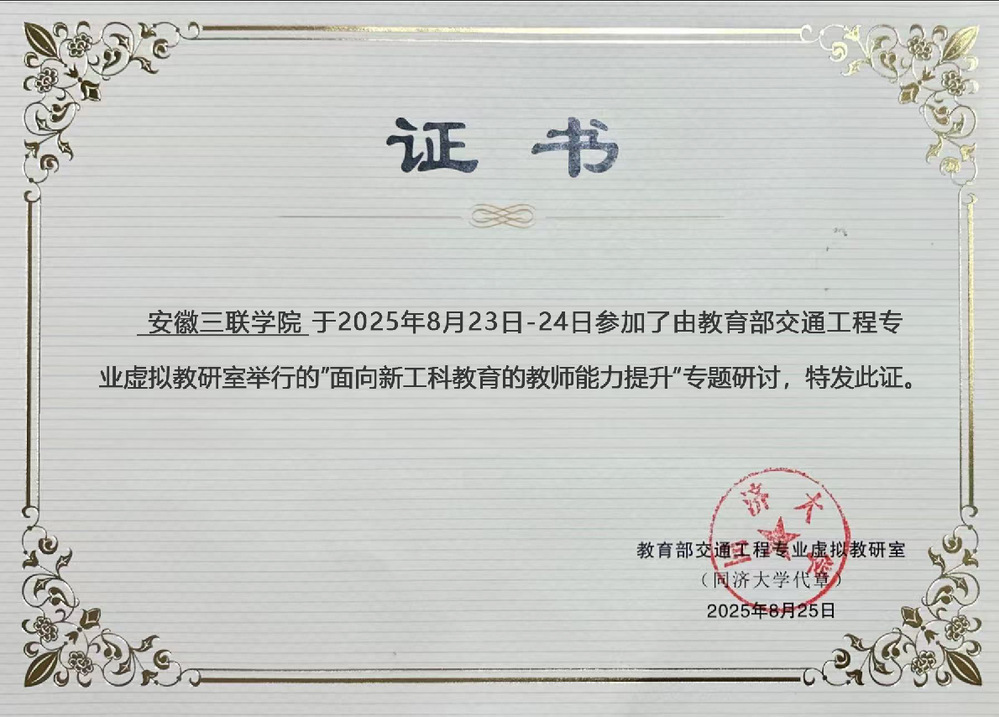 安徽三联学院通过深度参与,聚焦智能交通前沿,与牵头单位及成员高校共同推进多项务实合作开发:联合开发《智能交通系统》等前沿课程、组织跨校联合虚拟仿真实验、参与“名师讲堂”活动、共研教学难点、课程思政融及考核评价方式等课题。通过系统性引进和借鉴专业核心课程资源,推动课程内容与教学质量的快速提升,形成“引进-消化-贡献”的良性循环,进而增强学生解决复杂工程问题的能力。