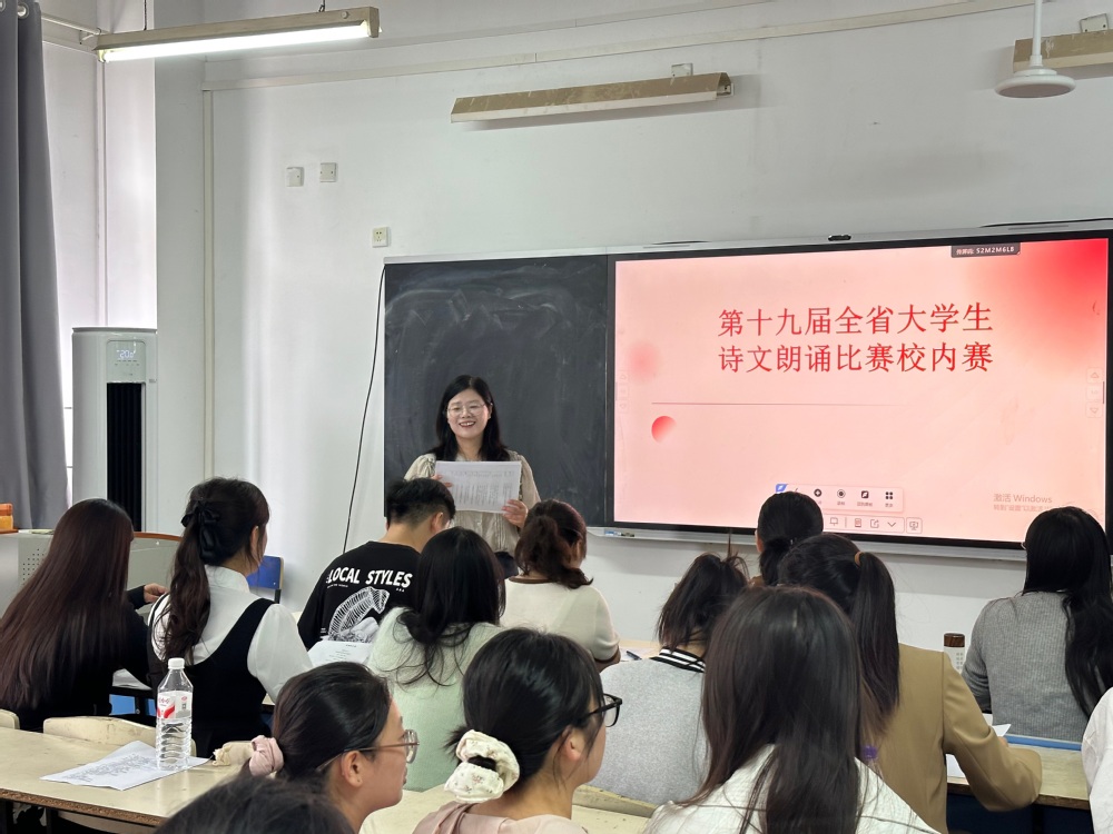为纪念中国人民抗日战争暨世界反法西斯战争胜利80周年,传承红色基因,弘扬抗战精神,近日,由文学部主办的第十九届全省大学生诗文朗诵比赛校级选拔赛在C403教室举办。本次比赛以“铭记烽火岁月,传承抗战精神”为主题,吸引了全校各院部学生的广泛关注与积极参与。