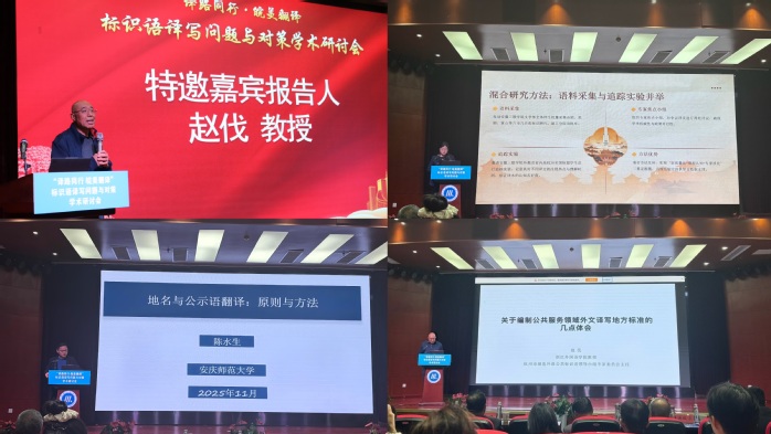 11月5日,由安徽省翻译协会主办、安徽三联学院承办的“译路同行 皖美翻译”标识语译写问题与对策学术研讨会在我校图书馆学术报告厅顺利召开。本次研讨会聚焦公共标识语译写领域的实际问题,汇聚全省翻译界专家智慧,共商对策,共绘安徽翻译事业高质量发展新蓝图。