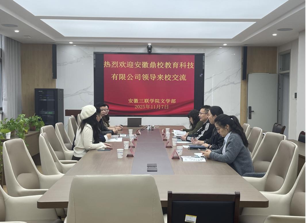 11月7日,安徽鼎校教育科技有限公司高校合作部运营总监李治一行应邀来访文学部,双方围绕汉语言文学专业实习基地建设展开深入交流。