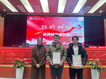 11月20日,学校第十一场优秀校友报告会在图书馆一楼学术报告厅举办。特邀中国科学技术大学博士后吴启锐、合肥工业大学博士研究生唐建平两位优秀校友作报告。数字创意现代产业学院党委副书记、学管主任,校友办公室负责人及学生代表近300人参加报告会。