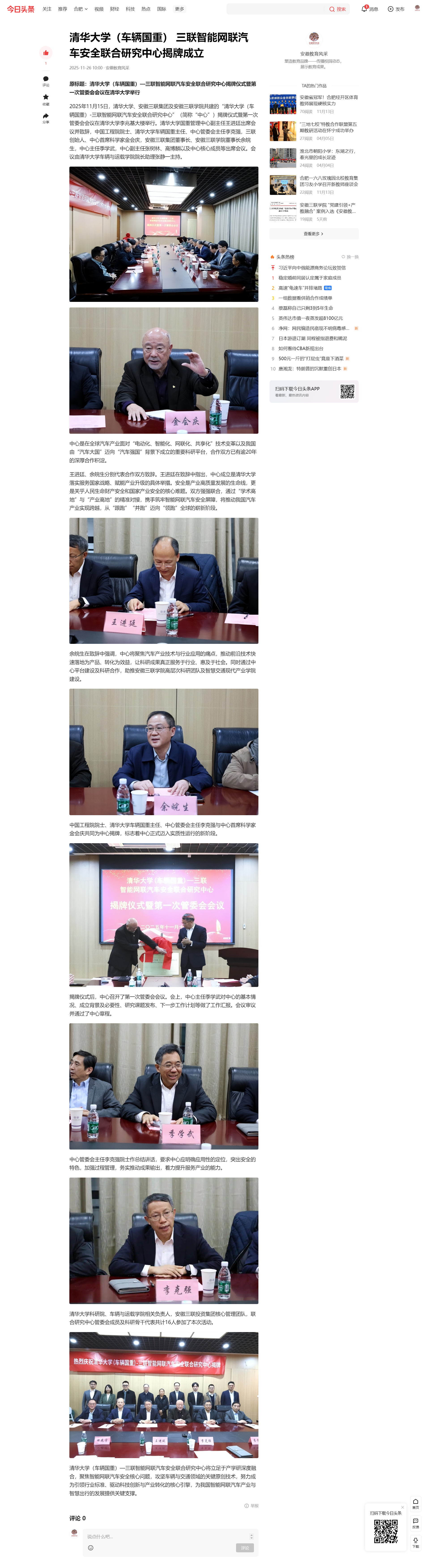 今日头条:清华大学(车辆国重) 三联智能网联汽车安全联合研究中心揭牌成立