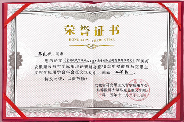 会议期间,安徽省社科联秘书长韩修良强调,要深入探讨马克思主义哲学的实践伟力与应用路径,为现代化美好安徽建设贡献理论智慧。学会会长黄洪雷作工作报告,表示将紧扣“十五五”规划核心目标,推动马克思主义哲学在新时代的创新应用。我校青年教师蔡良辰撰写的论文荣获本次年会征文活动二等奖。