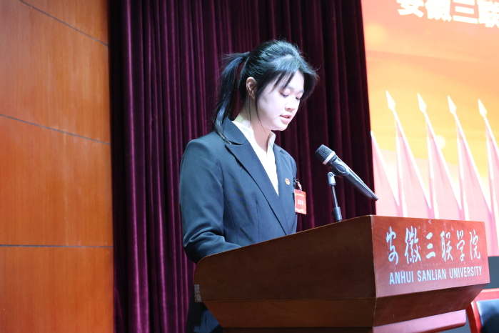 葛方羽在致辞中代表安徽省学生联合会,对我校学生会在思想引领、学风建设、权益服务等方面取得的扎实成效表示肯定。她希望校学生会以此次大会为新起点,以更加饱满的精神状态、更加实效的创新举措,创造更加有为的工作成效。