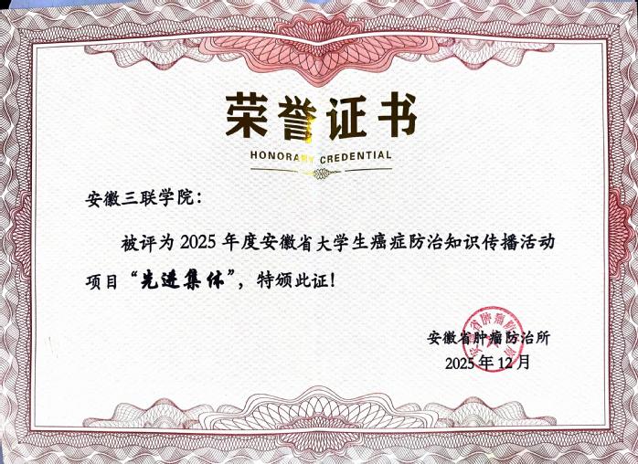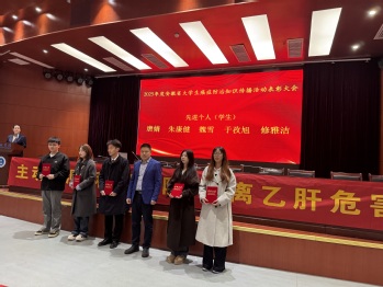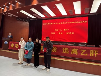 徐辉代表安徽省肿瘤防治所宣读了表彰决定,安徽三联学院获评安徽省大学生癌症防治知识传播活动项目先进集体。随后,徐辉为癌症防治工作先进集体代表颁奖,范兆红为先进个人颁发荣誉证书。