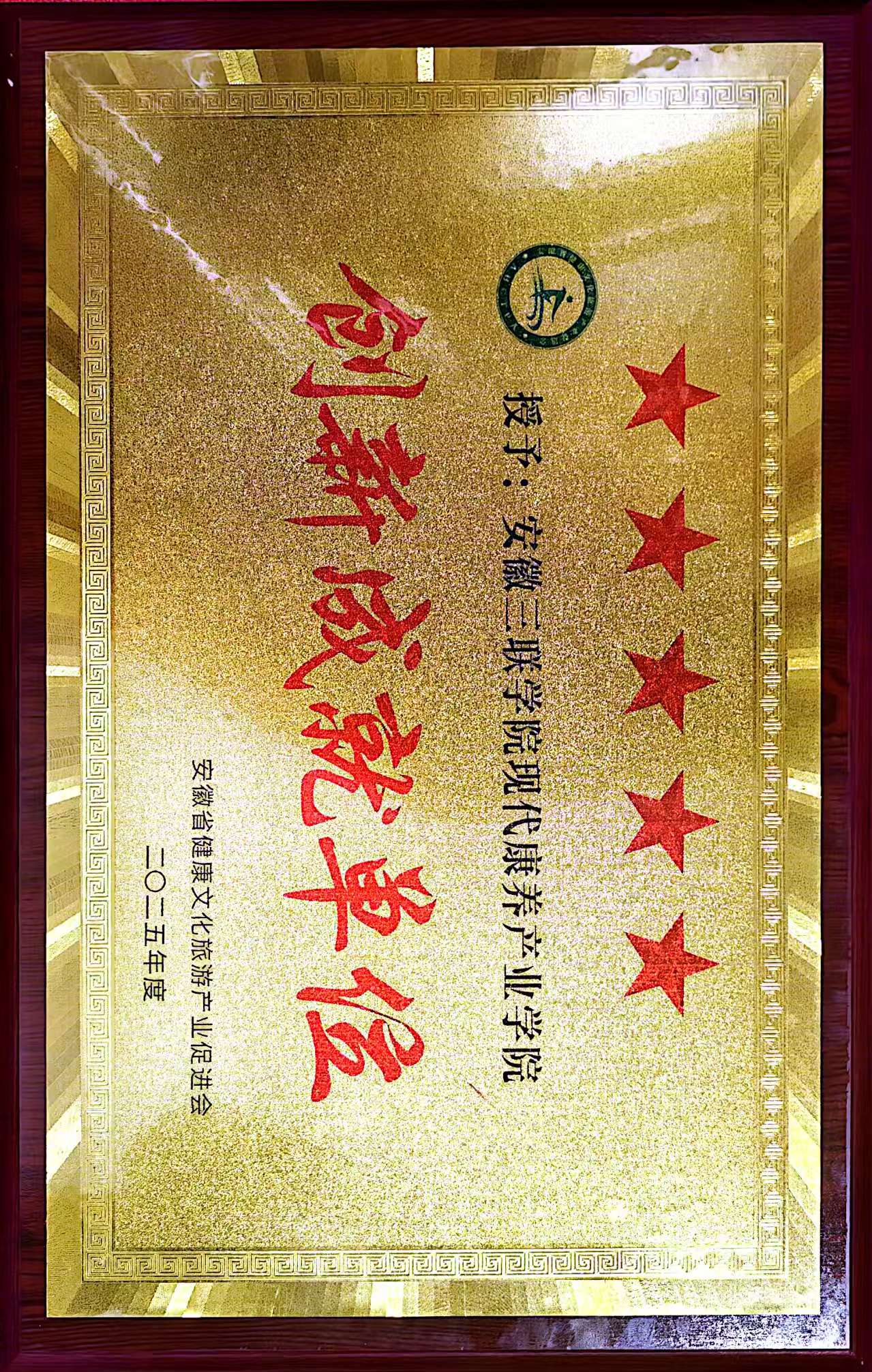 近日,安徽三联学院现代康养产业学院荣获由安徽省健康文化旅游产业促进会颁发的“创新成就单位”称号,以表彰其在康养领域作出的突出贡献。
