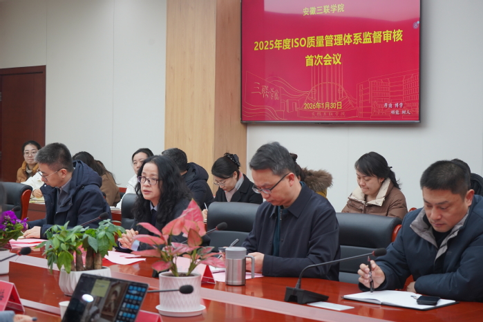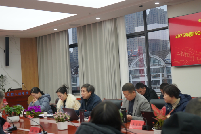 1月30日,中国检验认证集团安徽评审中心专家组牛锋一行来校开展2025年度ISO质量管理体系监督审核工作,校长江秀丽,副校长操晓峰、傅炜,以及相关院部和职能处室负责人全程参与此次审核。