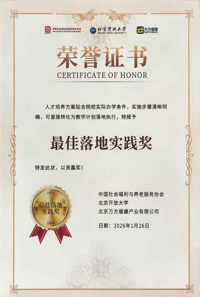 1月25日至29日,全国康养专业产教融合师资高级研修班在北京成功举办,我校现代康养产业学院教师钱杨应邀参加并顺利结业。