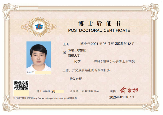 近日,安徽三联学院智慧交通现代产业学院青年教师王飞博士圆满完成了在安徽三联集团博士后科研工作站期间的科研任务,顺利出站。王飞博士在站期间,依托国家车辆驾驶安全工程技术研究中心及安徽省普通高校交通信息与安全重点实验室平台,聚焦新型红色荧光材料的设计、制备与性能优化,取得了一系列具有创新性的教科研成果,为我校相关学科发展注入了新的活力。