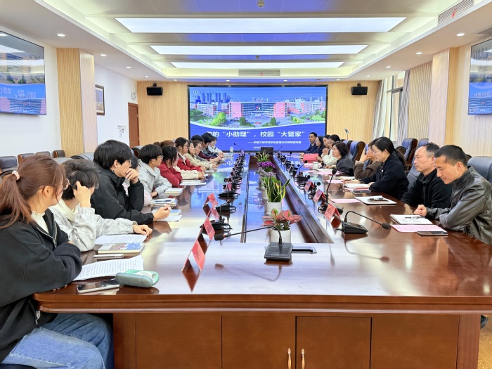 3月25日下午,以“你的小助理,校园大管家”为主题的“我与校领导面对面”学生助理专场活动在图书馆412会议室举行。副校长蔡文芬,图书馆、学生处、安全管理处、体育部等单位负责人,相关院部学管主任及16名学生助理代表参加活动。