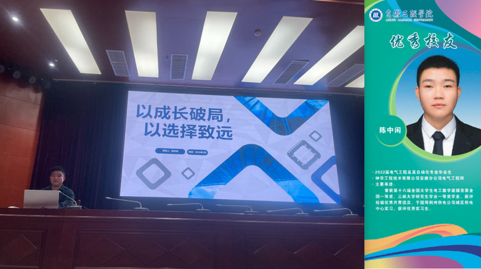 陈中闲以《以成长破局,以选择致远》为题,从大学学习、行业需求、赛道选择、终身学习四个维度分享了专业能力提升与职业路径规划的经验,鼓励学弟学妹们善用AI工具拓展认知边界,实现“自我需求”与“外部需求”的精准对接。