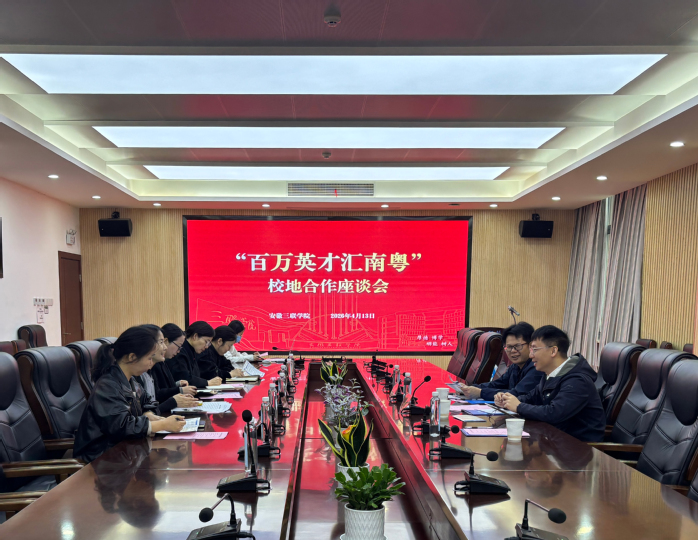 4月13日,“百万英才汇南粤”校地合作座谈会在图书馆T412举办。惠州市委教育工委副书记、市教育局党组成员林耿林,惠州市惠新学校专职副书记胡国华,三院三部负责就业工作学管主任及就业创业处相关工作人员参会。会议由就业创业处负责人主持。