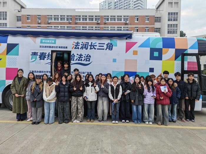 12月19日,“法润长三角 青春绘法治”长三角民办高校大学生法治素养公益广告邀请赛优秀作品巡展活动在我校顺利举办。巡展大巴与实体展板在校园内集中展示了十年来的优秀作品,吸引了众多师生。