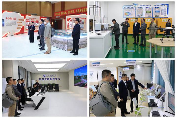 会前,调研组先后参观了校史综合展厅、无人机实验实训室、剪纸艺术研究中心、质量监测管控中心、智慧安防指挥中心及智慧康养实验室等场所。调研组对学校在智慧校园建设中的前瞻布局与务实成效给予肯定。
